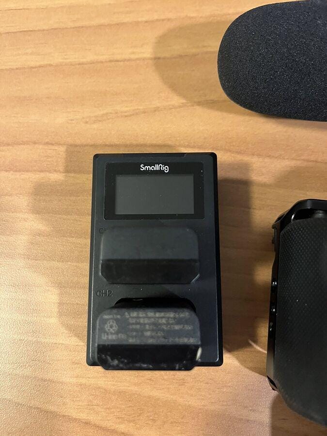 Included in the package are the Rode Pro mic, SmallRig batteries and charger, a small ring light, and the SmallRig cam cage, making it a complete set for any photography enthusiast.